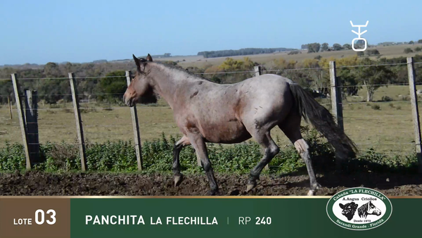 Excelente yegua, lo tiene todo, se destaca por su mansedumbre y rienda, pero sobre todo por su resistencia, con mucho corazón y de todo trabajo, realmente cuesta mucho desprenderse de ella. Su madre Perla Negra La Flechilla, destacada yegua de la Cabaña, fue Campeona Nacional de Enduro año 2006. Muy recomendada para cuidarla para pruebas de Enduro y Marcha.