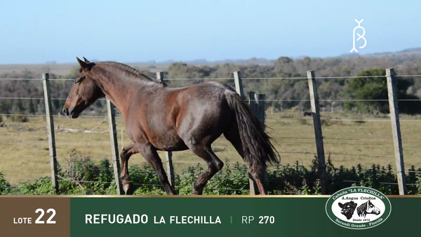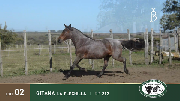 Yegua muy mansa, como para andar cualquier persona, muy buena yegua, de buenos andares, rendidora, muy mantenida y fuerte para las garras. Una hermana por madre está participando en la Marcha (Pimienta LF). Su madre India La Flechilla, RP: 90, es hija de Marcelina La Flechilla (5to puesto Marcha Caballos Criollos Minas 1996) y Hermana entera de Arequita La Flechilla y Afrikana La Flechilla. Sin dudas las mejores líneas para Enduro de La Cabaña. Su padre RG Timbo del Totoral (Ventarrón y Lluvia), Ventarrón padrillo hijo de Mansa 226 Ganadora de la Marcha de Flores 1995 y Lluvia 364 que fue 5ª en la Marcha de Flores 2005.
