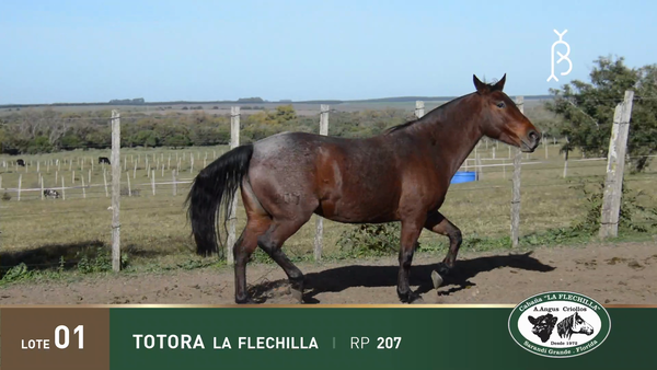 Yegua con buen físico, mansa, de buen carácter y bien domada, con muy buena rienda, para lucirse apartando ganado y andar bien montado. Su madre Polvareda La Flechilla fue finalista en la Marcha Caballos Criollos de José Ignacio 2006. Además, salió 3ra. en el Enduro Criollos Florida (50 km).