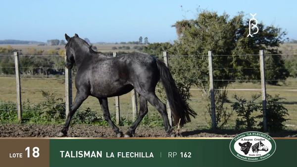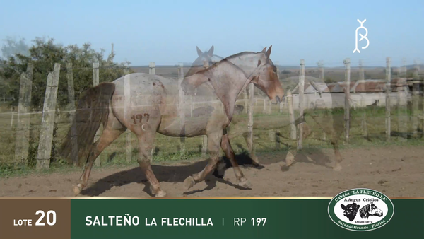 Caballo bien manso, acostumbrado al trabajo de campo. Tiene un hematoma en la carretilla por un golpe en el camión que se está tratando, según el veterinario que lo reviso no le afecta en nada el mismo. Su madre, Pitufa La Flechilla, fue Ganadora de la Categoría Menores de la Marcha de Salto 2010 y Mejores Aplomos.