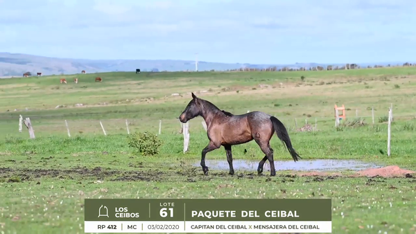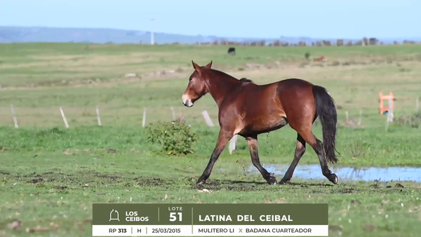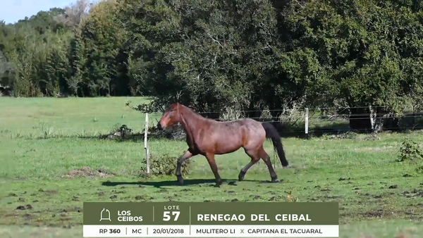 Uno de los destaques del remate esta mora, muy atenta, inteligente y que le encanta andar adelante! Hija del Moro hijo de Armonico LI, Celoso LI (x Celosa LI x Mate Amargo LI), en una Madre de Tania Furest (Lobuna RP103) hija del Tropezon LI (Halcón LI x Butaca LI) la cual competimos en chasques y enduro quedando 4to. en Chasque Aceguá, 3ra. en Enduro de Criollos 50 km de Florida y de muy bajo pulso