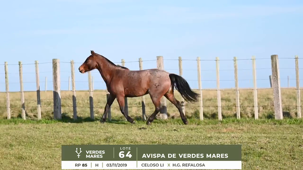 Rosillo gateado de 1,46 de alzada hermano materno de nuestras Marcheras RP8 Jacinta de Verdes Mares finalista Marcha FICCC en Jaguarao 2018 y de Hermosa de Verdes Mares RP 42 5ta. colocada en categoría menores de la Marcha de Florida 2022. Este hijo de Celoso LI por madre de origen Gallinal pero hija de padrillo LI. Ojo con este gateado de los más mansos del lote y bajo pulso